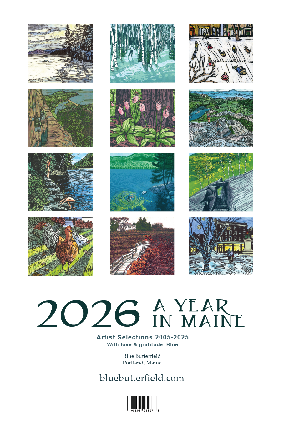 Portland, Maine artist Blue Butterfield's calendars are stunning, full of color, and evocative of every season in Maine. Her work is peaceful and full of nature. She has a way...