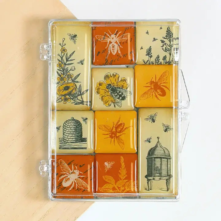 Bees Bees Bees! The one and only original Mighty Magnet. Lucy Lu invented these in 1999 and is still making every single one of them - from die cutting by hand to pouring - with love! Each set of extra thick magnets comes in a clear jewel case.