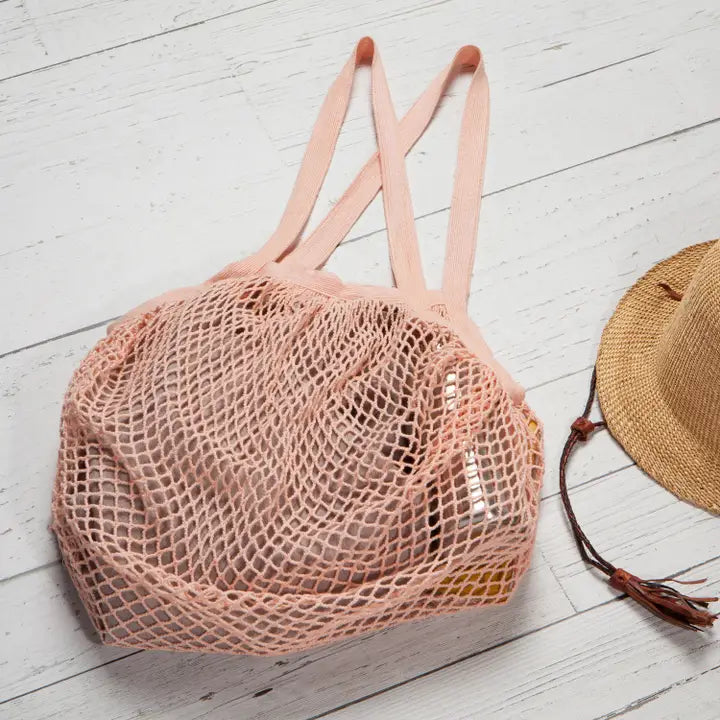 Use this lightweight, reusable mesh Le Marche Shopping Bag to carry goods on your next set of errands instead of plastic bags. Inspired by the durability of the humble fishing net, the idea of these lightweight mesh shopping bags has its origin in the villages of Normandy, France. Their open weave design allows for some stretch, and it enables them to fold down into a compact size for storage. Incredibly versatile, several bags can neatly fit into a backpack or tote, making them ideal for larger shopping trips as well as quick visits to the local markets. Made from pure cotton, these stylish bags possess the strength and flexibility to safely carry heavier, irregularly shaped items.